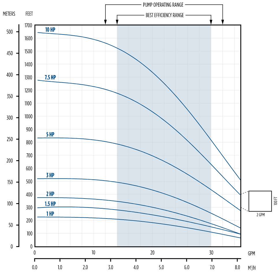 The standard FPS Series V submersible well pump features unique hydraulics that improve efficiency and minimize wear even when pumping abrasives. Discharge and motor brackets are available in thermoplastic or stainless steel with a removable check valve system. This submersible well pump series is available in 10, 15, 20, and 25 gpm, 1/2 – 5 horsepower.